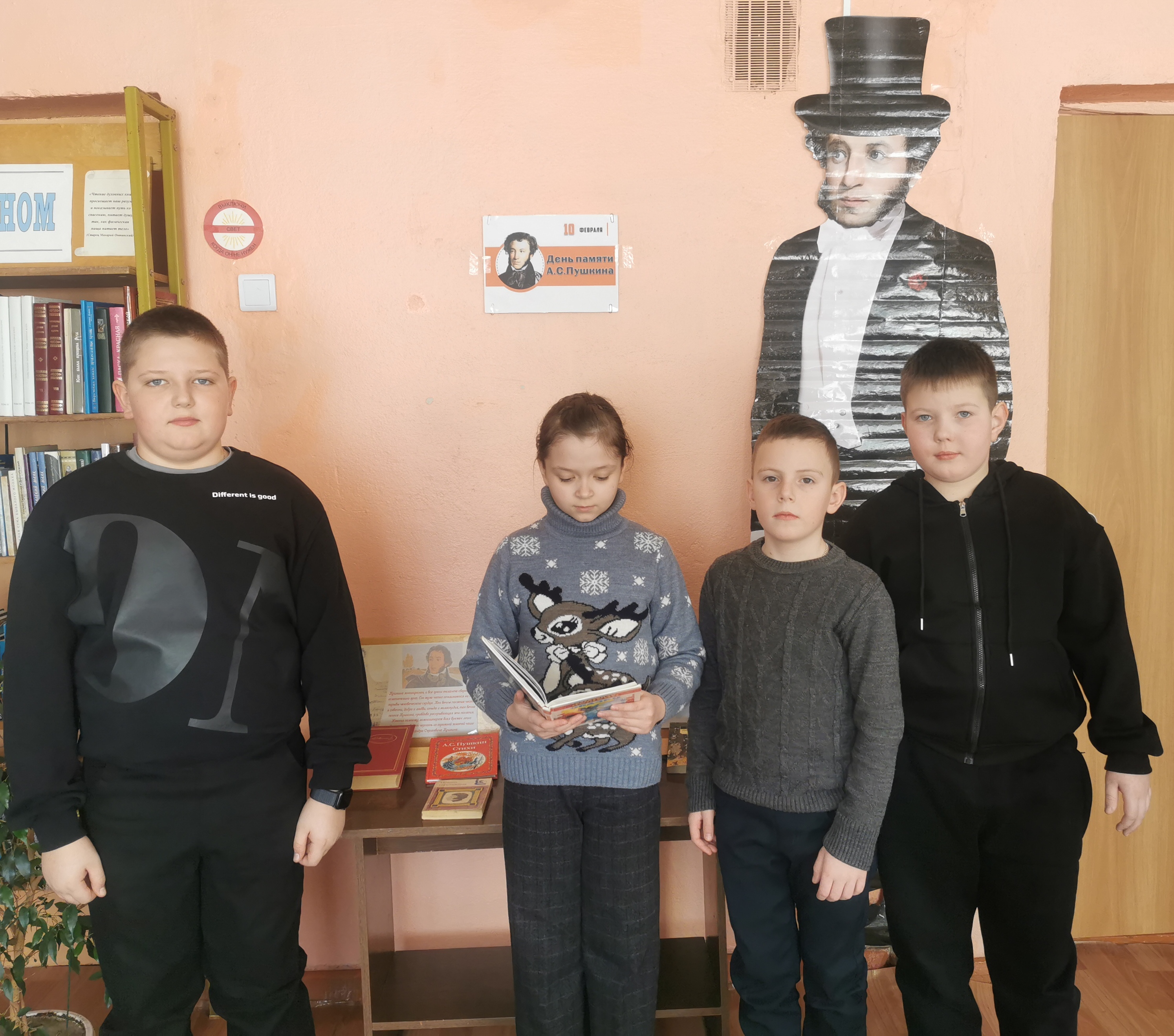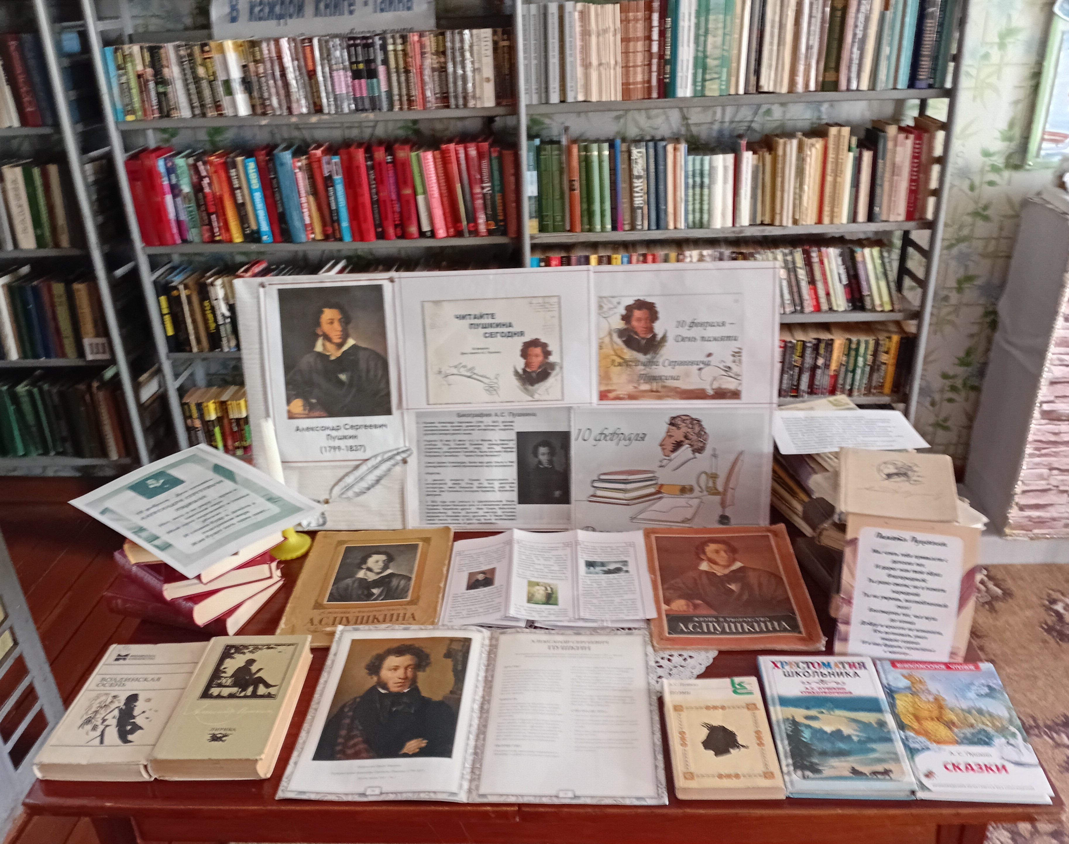 10 февраля в Знаменской поселенческой библиотеке для школьников прошел час чтения «Пушкин вслух», посвященный памяти А.С. Пушкина. Библиотекарь Т.Г. Поварова напомнила присутствующим основные моменты и даты жизни великого поэта, рассказала о его творчестве и трагической гибели. Ребята с удовольствием вспоминали стихи и прозу А.С.Пушкина, говорили о том, что все его творчество великий гимн жизни, участвовали в викторине «Читаем Пушкина вместе». На книжной выставке были представлены произведения великого поэта.