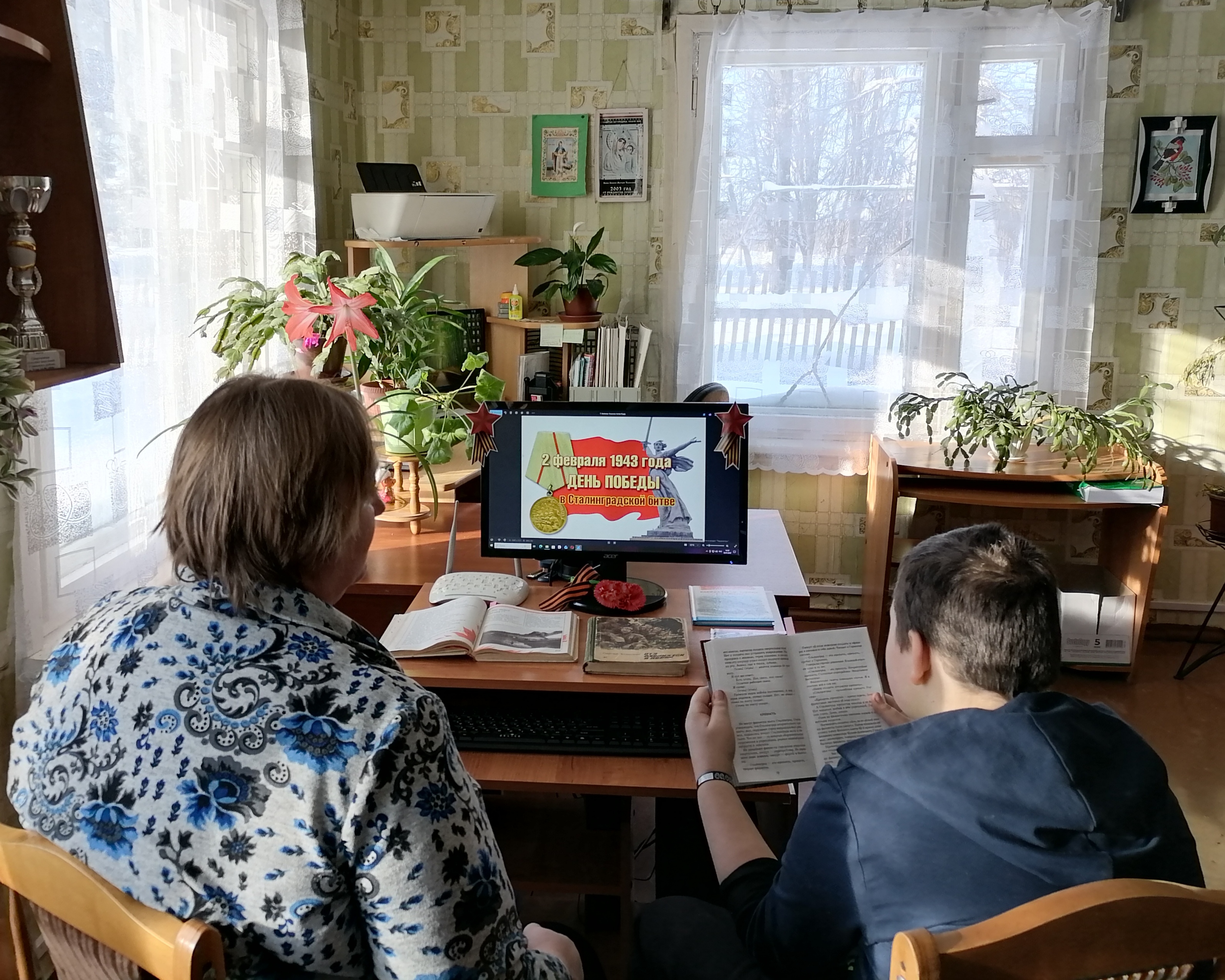 В ходе мероприятия дети читали рассказы из книги С. Алексеева «Идёт война народная», В. Богомолова «За оборону Сталинграда», в которых рассказывается  о некоторых эпизодах Сталинградской битвы, о её героях, о тех, кто боролся с фашистскими захватчиками за город на Волге и победил врага. Для детей была подготовлена выставка книг, посвященная Сталинградской битве.