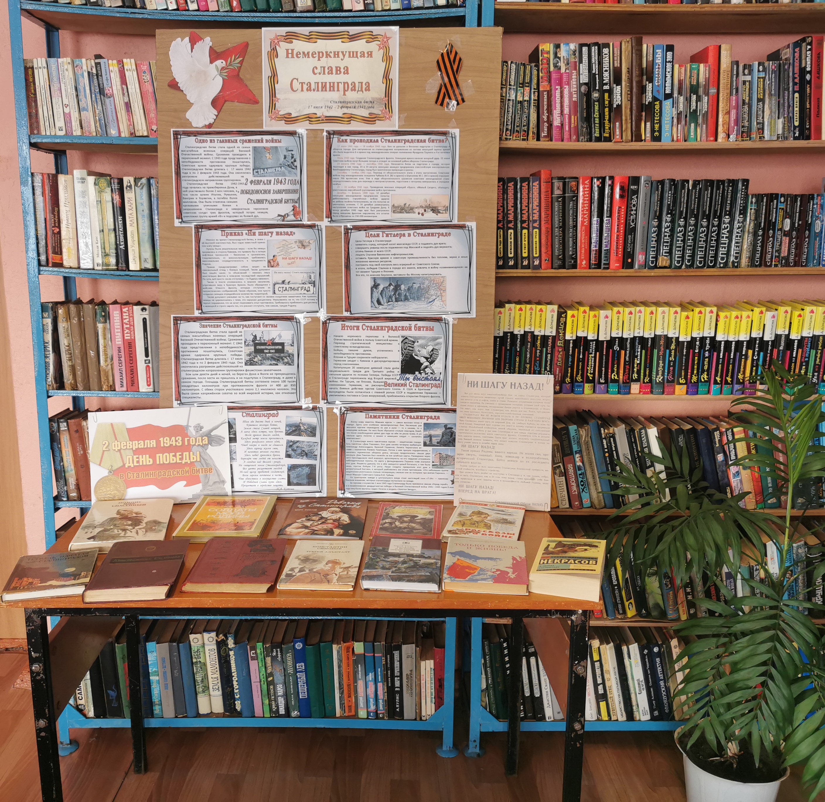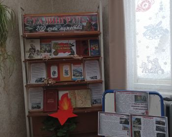 Во Всходской поселенческой библиотеке проведен час мужества и славы «И превращался в пепел снег…», посвященный 83-й годовщине разгрома советскими войсками немецко-фашистских войск в Сталинградской битве. Библиотекарь рассказала учащимся 1-4 классов МБОУ «Всходская СШ» о значении города на Волге для нашей страны, об ожесточенных боях и героизме советских солдат, о тяжелом положении мирных жителей и о героях, чьи подвиги сохранила история. Дети прочитали рассказы С. Алексеева «Знаменитый дом», «Мамаев курган», «Сталинградская оборона», стихотворения В. Жукова «На Мамаевом кургане», Н. Котовой «Сталинград», В заключении участники мероприятия познакомились с художественными произведениями, представленными на книжной выставке «Немеркнущая слава Сталинграда».