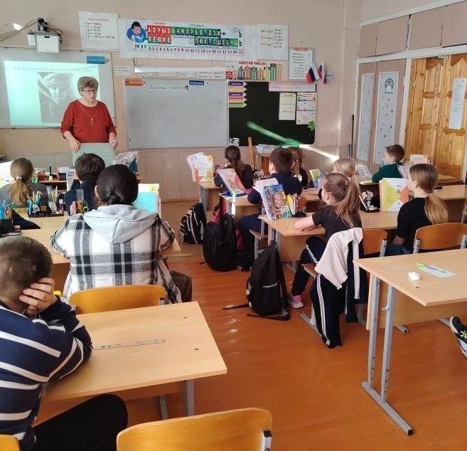 20 марта библиограф Долгова С.И. провела для учеников 4 «Б» класса краеведческий час «Вехи истории родного края», на котором ребята узнали об истории нашей малой родины. Школьники познакомились с историей основания станции Угра. Узнали о героизме и доблести населения и армии в годы Великой Отечественной войны (гибель экспериментальной батареи «Катюш» под командованием капитана И.А. Флёрова; партизанское движение, высадка десанта 4 ВДК, подвиг десантника В.С. Улитчева, бои 33-й армии генерала М.Г. Ефремова и кавалерийского корпуса генерала П.А. Белова). Состоялось знакомство с книгой И.П. Беляева «Золотые звёзды родного края». Как восстанавливалась Угра, как и когда образовался Угранский район (округ), какие улицы в селе названы в честь героев ребята узнали из презентации, которую подготовила библиограф Долгова С. И. Известные им события и факты, названия улиц ребята рассказывали сами.