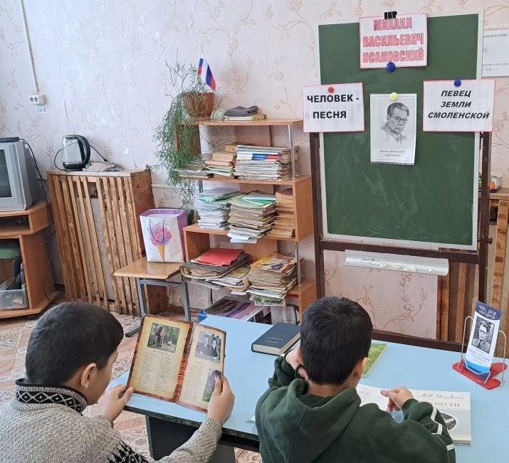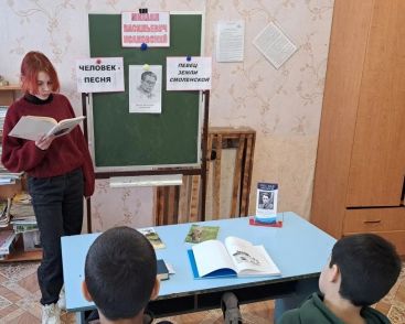 В Знаменской поселенческой библиотеке прошло мероприятие для школьников «Окрыленная песней душа». Библиотекарь Т.Г. Поварова озвучила интересные факты из жизни Михаила Васильевича и его творчестве, которые связаны с родной Смоленщиной и с событиями в стране. Рассказала о том, что поэт является создателем современной народной песни, сопровождая свой рассказ чтением его стихов, ставшими на долгие годы любимыми песнями многих поколений: «Вдоль деревни», «И кто его знает», «Летят перелётные птицы», «Огонёк», «Враги сожгли родную хату» и другие. Вспомнили знаменитую «Катюшу» с её необычной судьбой и всемирной славой. Завершилось мероприятие беседой, во время которой ребята высказывали свое мнение о творчестве поэта-песенника.