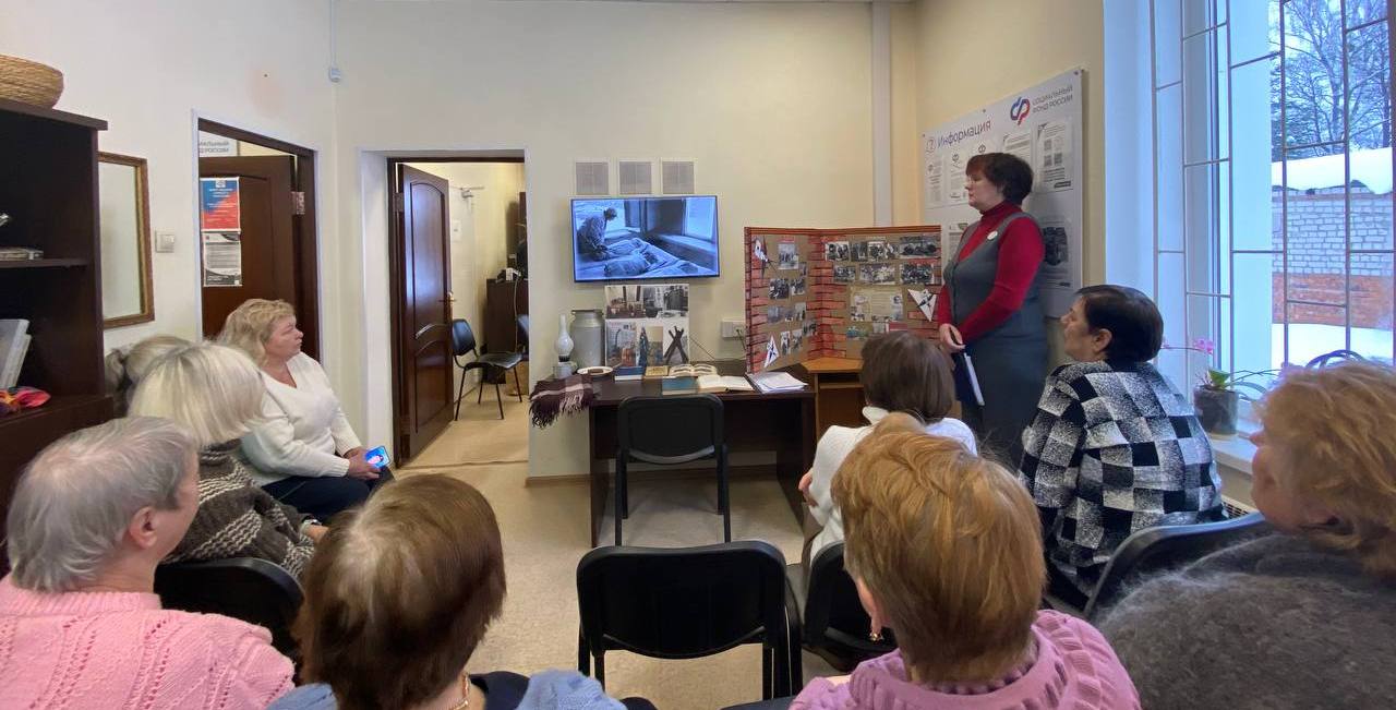 В Центре общения старшего поколения на базе Офиса в Угранском районе Клиентской службы в Вяземском районе прошел час памяти «Люди Ленинграда- вы герои! Подвиг ваш бесценен на века». 27 января, вДень полного освобождения Ленинграда от фашисткой блокады, библиотекарь нестационарных форм обслуживания центральной библиотеки Апенченко И.И. рассказала о суровых условиях жизни блокадного города по отрывкам из записей очевидцев, как военнослужащих, так и обычных граждан: о людях и судьбах, о суточной норме хлеба на человека, о Дороге жизни – единственной дороге, соединяющей город со страной. На мероприятии прозвучали стихи О. Берггольц, Ю. Вороноваи других, песня Александра Розенбаума «На Дороге жизни».Присутствующие познакомились с книжной выставкой«Непокоренный Ленинград» и минутой молчания почтили память погибших.