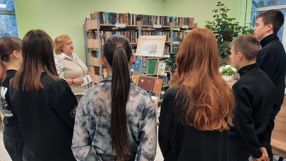 В центральной библиотеке прошел литературный час «Гениальный сатирик-правдоискатель русской земли». Библиотекарь абонемента Полунина В.Ф. познакомила ребят с этапами жизни, творческим наследием этого удивительного писателя. Завершилась встреча обзором книжной выставки «Великий сатирик».
