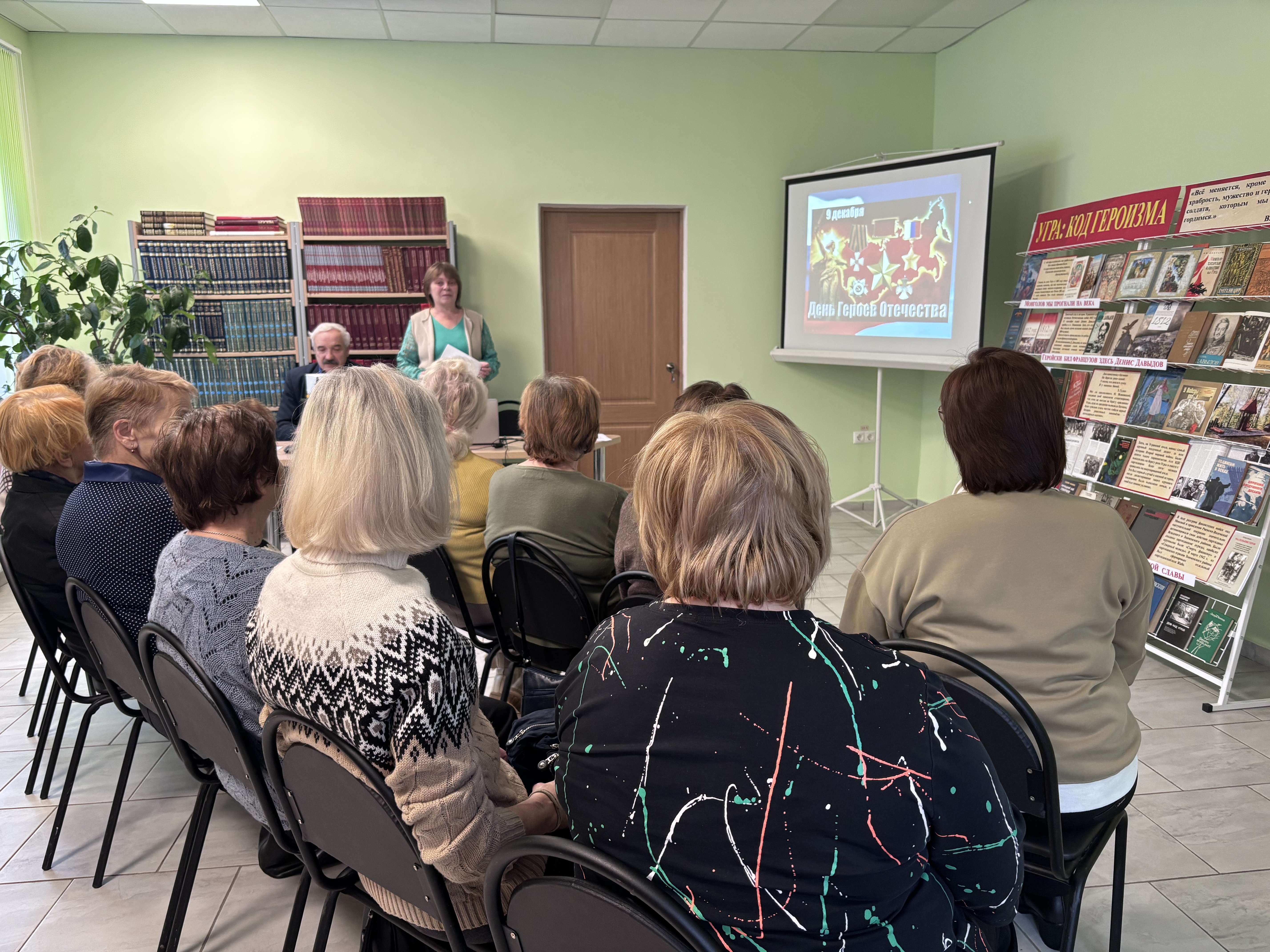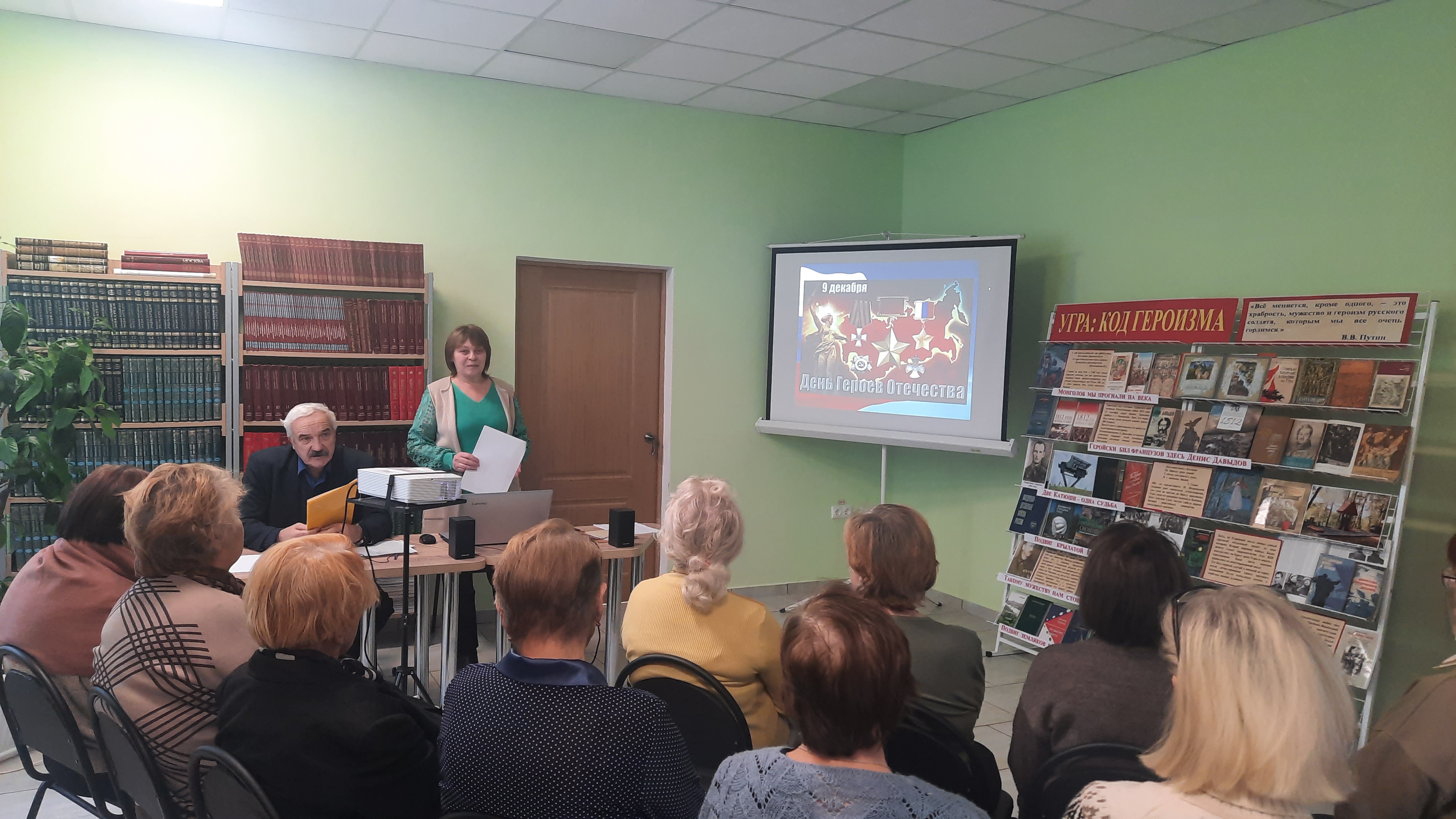 9 декабря – День Героев Отечества. Он относится к памятным датам России. В читальном зале центральной библиотеки прошел тематический час «Угра героическая: история и современность». На мероприятии присутствовал заместитель Главы муниципального образования «Угранский муниципальный округ» Смоленской области, ветеран боевых действий на Северном Кавказе Г.М. Фетисов. Геннадий Михайлович рассказал о большом значении Дня Героев Отечества для всех поколений, о важности сохранения исторической памяти, о военной службе. Ведущий библиотекарь читального зала Шолохова Е.В. познакомила пользователей с историей этой памятной даты, рассказала об угранцах – Героях Советского Союза, о наших земляках, исполнявших воинский долг в Афганистане, на Северном Кавказе и в ходе специальной военной операции на Украине. Присутствующие рассказали о своих родственниках – участниках Великой Отечественной войны. На мероприятии звучали стихи и песни, посвященные защитникам нашей Родины. Завершилось мероприятие обзором тематической книжной выставки «Угра: код героизма», на которой представлен широкий выбор литературы о героических страницах истории нашей малой Родины со времен монголо-татарского ига до наших дней.