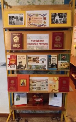 В Желаньинской поселенческой библиотеке был проведен час мужества «Героям Отечества - вечная слава!», на котором библиотекарь познакомила читателей с историей памятной даты этого дня, примерами героизма и отваги воинов России. Что этот день посвящен всем тем людям, чья сила духа, честь, доблесть стали примером проявившие наивысших нравственных человеческих качеств и ответственности перед Отечеством, которые заслуженно зовутся Героями. Герои России и их подвиги многочисленны. Следует помнить и знать не только героев прошлого, но и тех, кто живет в настоящем, тех, кто отдает жизнь будущим поколениям. Только тогда мы сможем стать по – настоящему великой державой, достойной всех своих героев. Завершилось мероприятие обзором книжной выставки «Гордимся славою героев», на которой представлена литература о героях Отечества разных эпох и различных по званию. Их объединяло одно – великая любовь к Родине и способность к ее защите.