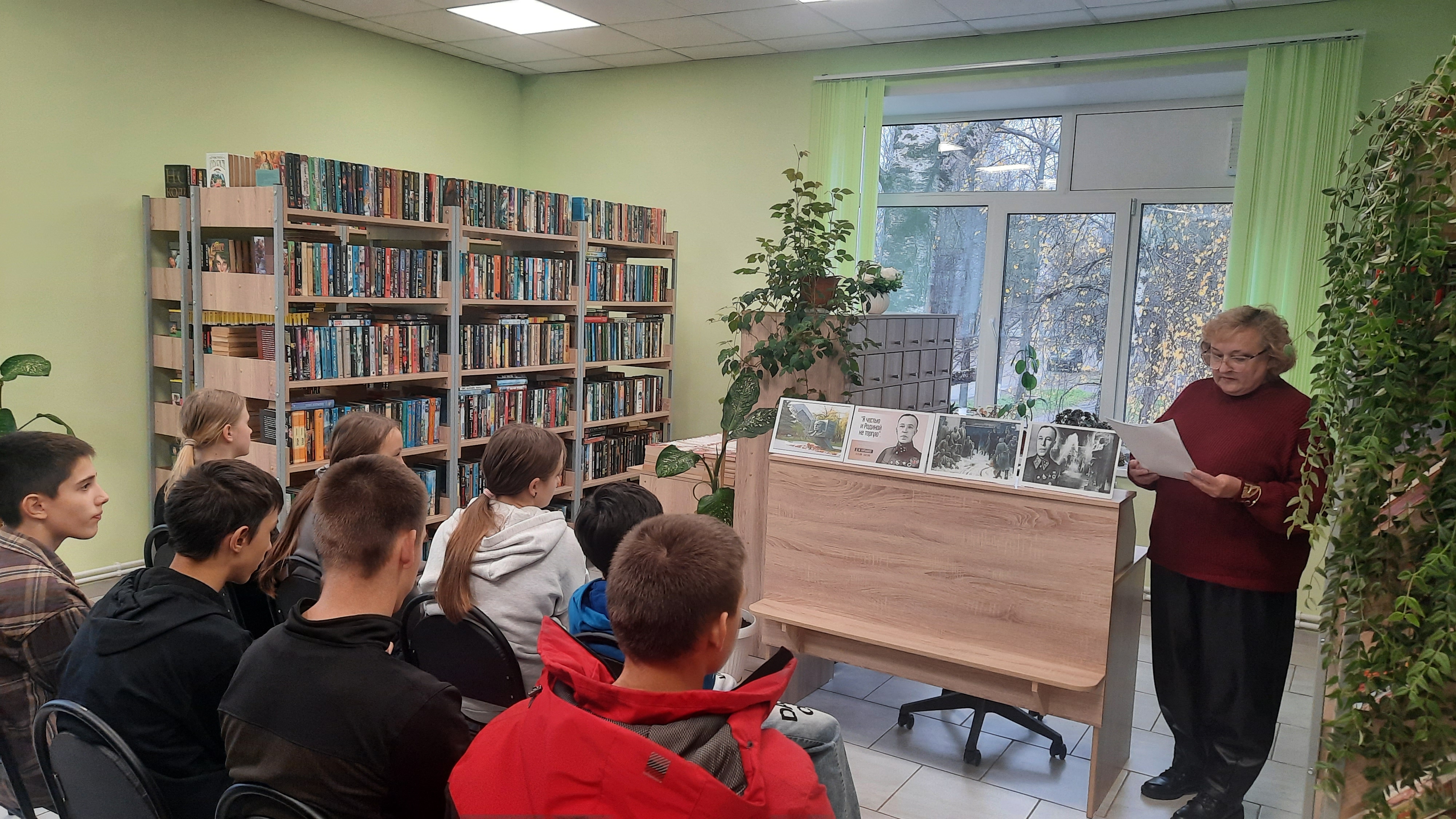 26 октября исполнилось 145 лет со дня рождения Героя Советского Союза Дмитрия Михайловича Карбышева. Подвигу этого человека был посвящен урок мужества «Карбышев: дорога в бессмертие», который прошел на абонементе центральной библиотеки. Библиотекарь Полунина В.Ф. рассказала ребятам о жизни и деятельности нашего соотечественника, они узнали о подвиге, который совершил советский генерал. Завершилось мероприятие обзором выставки «Непокоренный генерал».