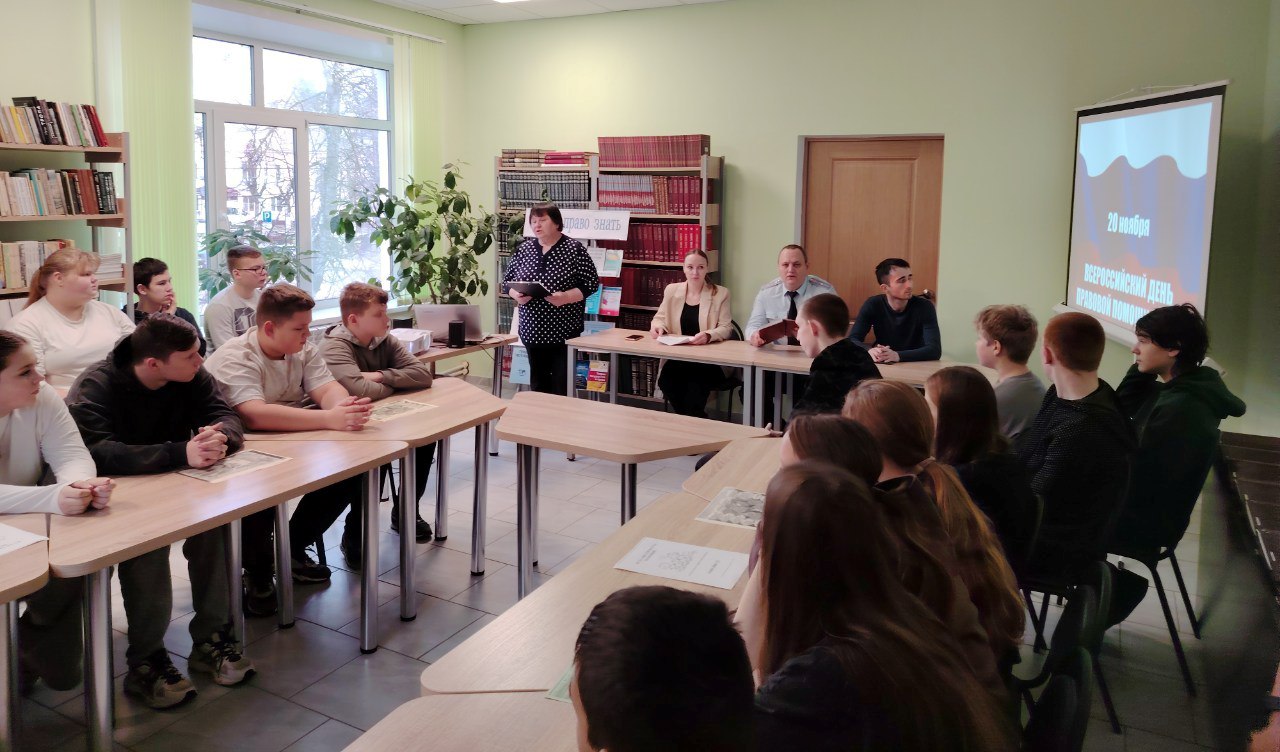 20 ноября во Всероссийский день правовой помощи детям в центральной детской библиотеке прошёл круглый стол «Права. Обязанности. Ответственность», участниками которого стали учащиеся 8-х классов Угранской средней школы с учителем истории О.Г. Скворцовой. В начале мероприятия библиотекарь рассказала ребятам о празднике, познакомила с основными правовыми документами РФ, подробно рассказала о Конвенции прав ребёнка, напомнила об их правах и обязанностях. Затем слово было предоставлено начальнику ОП по Угранскому району МО МВД России «Вяземский» майору Е.А. Фёдорову, который в ходе беседы со школьниками в доступной форме рассказал им о юридической ответственности за различные правонарушения несовершеннолетних и о том, какими серьёзными могут быть за них наказания. Тему продолжил помощник прокурора Угранского района Абазов Атмир Алимович, который ещё раз напомнил присутствующим, что все граждане, в том числе и дети, должны соблюдать общественный порядок, уважать права других лиц и не совершать правонарушений, чтобы не оказаться на скамье подсудимых. Председатель комиссии по делам несовершеннолетних и защите их прав МО «Угранский муниципальный округ» Смоленской области Филиппова А.А. познакомила учащихся со статистикой рассмотрения дел подростков на комиссии за 2024 год и призвала ребят проводить своё свободное время с пользой: в спортивных секциях, кружках. В ходе обсуждения школьники смогли задать специалистам интересующие их вопросы и получить компетентные ответы. К мероприятию была оформлена книжная выставка «Имею право знать».