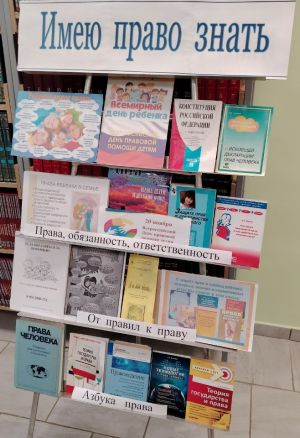 Накануне Всероссийского дня правовой помощи детям, библиотекарь Иванова М.С. провела акцию-беседу «Права свои знай, обязанности не забывай». С подростками была проведена беседа об их правах и обязанностях, какие правила нужно соблюдать, чтобы не нарушать закон, и вручены памятки «Какие права имеет ребёнок по мере взросления?».